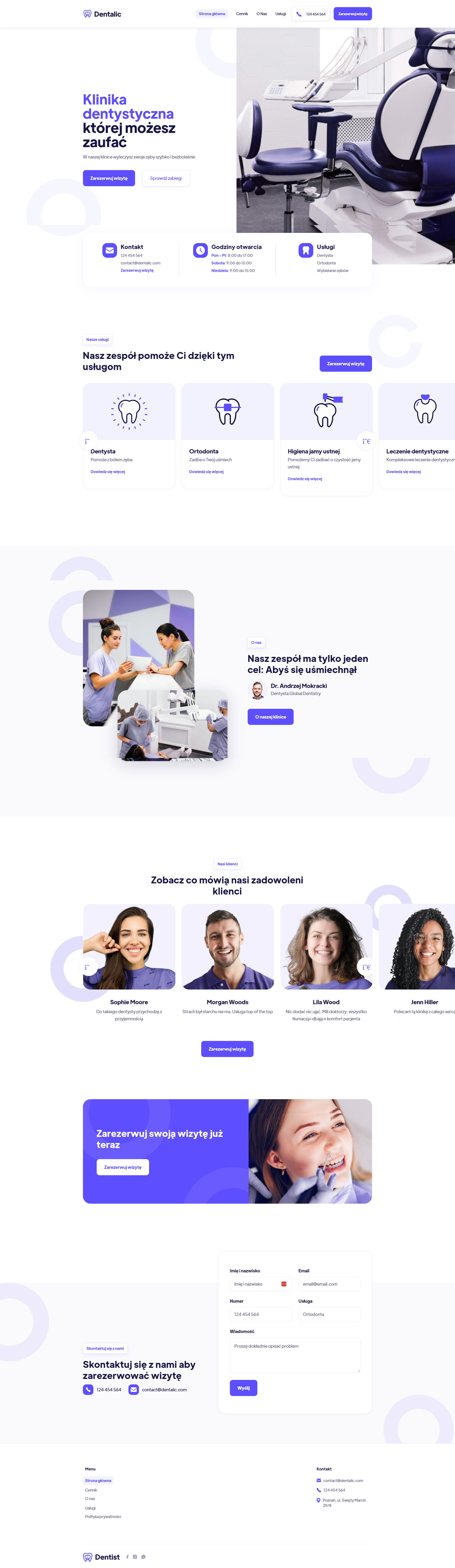 Strona internetowa stworzona z myślą o nowoczesnej klinice dentystycznej. Jasny, przejrzysty design i czytelna struktura zapewniają pacjentom szybki dostęp do informacji i budują wizerunek miejsca, któremu można zaufać od pierwszego kliknięcia.